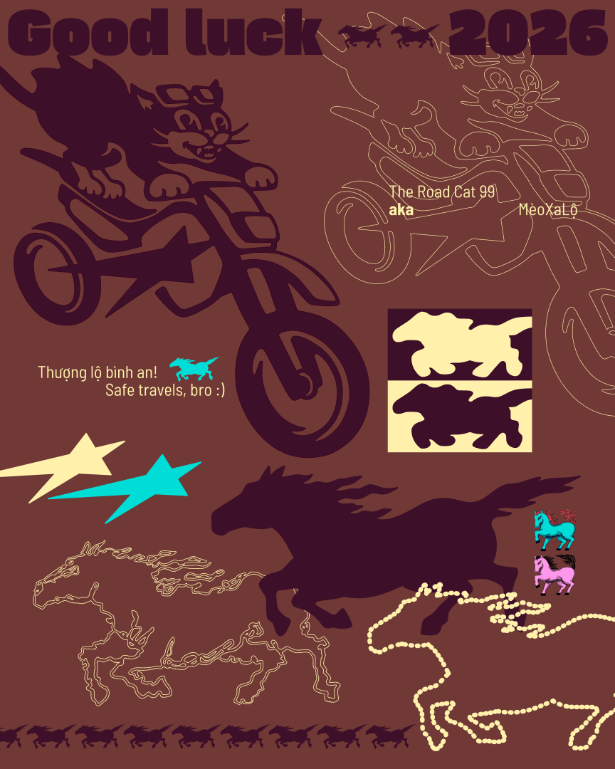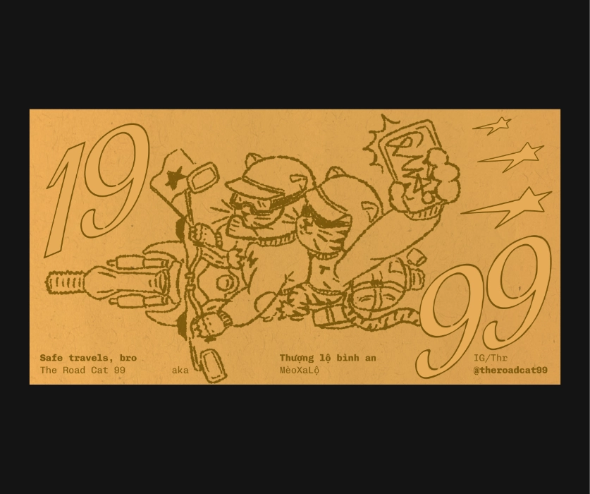 Along her journey, she works alongside Tom Huy — a graphic designer who is always learning and exploring. Outside of work, they have traveled across Vietnam and created @Theroadcat99 (MèoXaLộ™), a space where they document their shared experiences through illustration and graphic design.